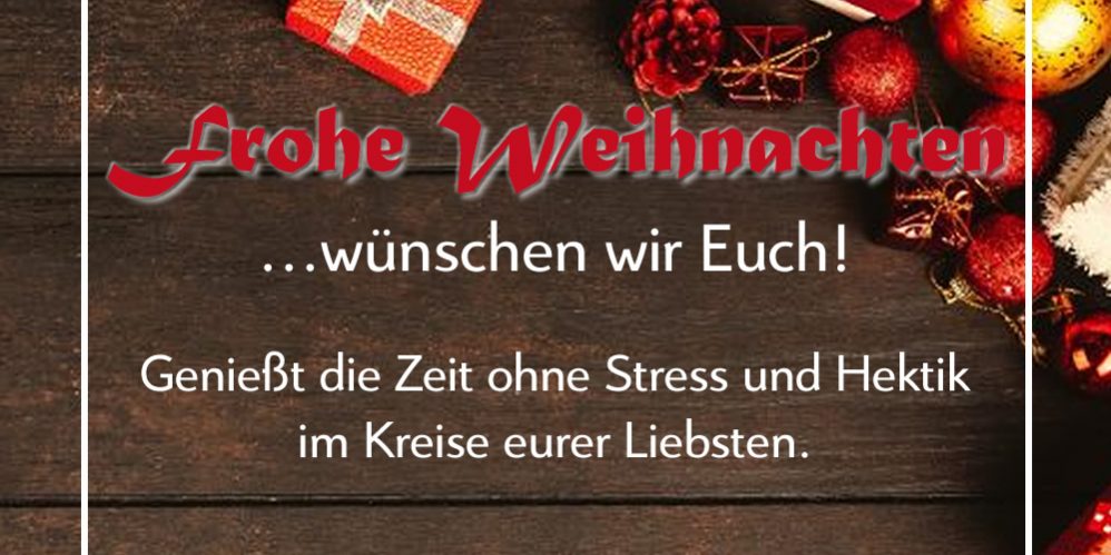 Jetzt aber erstmal ab in die verdiente freie Weihnachtszeit! Wir wünschen Ihnen erholsame Festtage, einen guten Jahreswechsel und vor allem viel Glück und Erfolg im neuen Jahr.